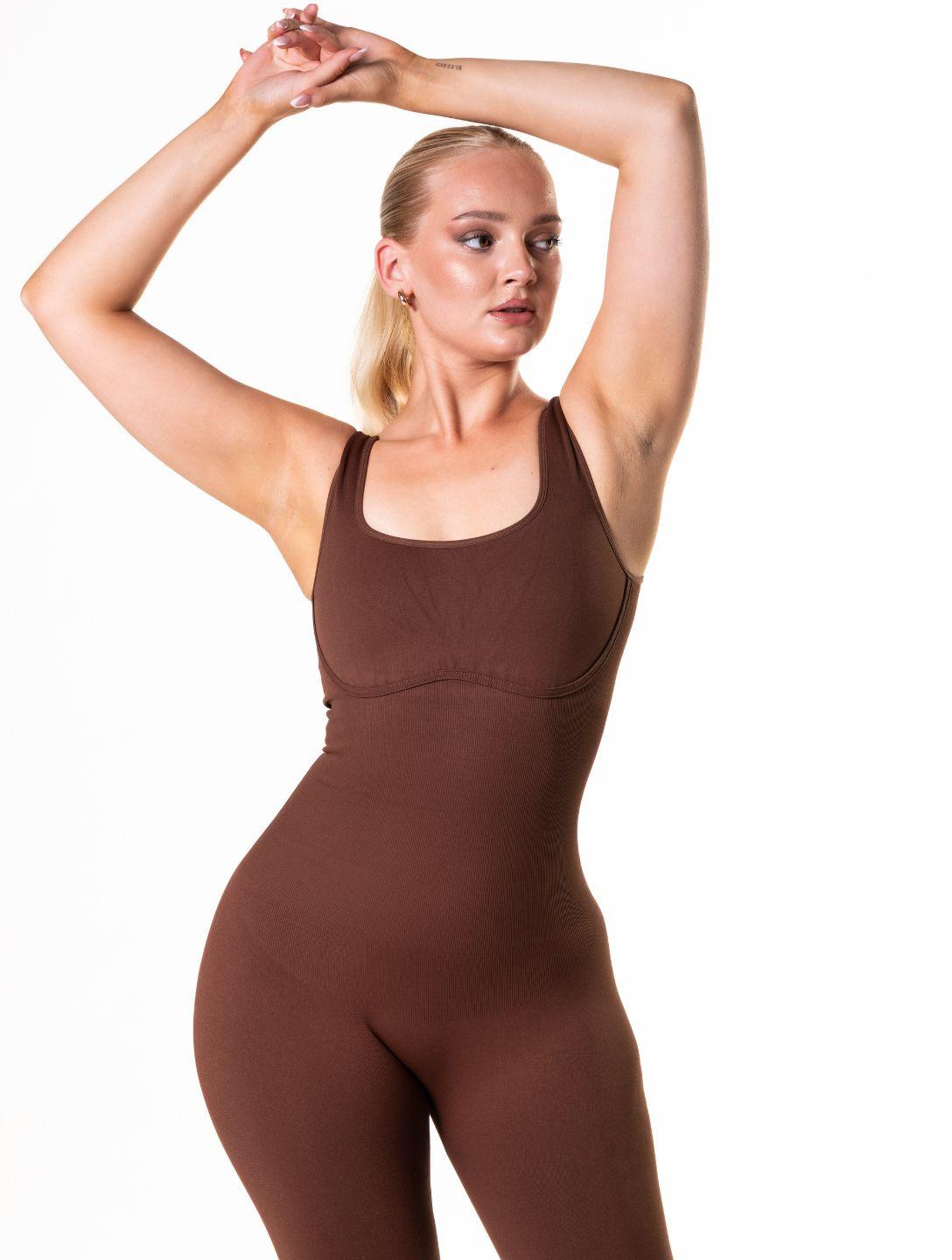 Ladies, enhance your elegance and confidence with our Square Neck U-Back Flared Jumpsuit. The front square neck design highlights your collarbone while the back U-shaped back design accentuates your curves. Flared trouser legs and double-layered chest provide comfort and shaping. With seamless weaving technology and high-elastic yarn, this jumpsuit will make you feel and look great with its tight tissue structure for a sexy silhouette.